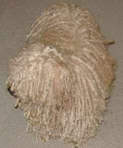 My husband and I had had 5 Pembroke Corgis over 25 years. We usually had 2 or 3 dogs at a time. When we lost our 4th Corgi, we decided we would like to try a non-shedding breed as our newest dog. We wanted a working or herding breed - after much study, we decided we wanted a Puli - although I had to agree to keep the coat well trimmed. After pursuing several leads, we found a breeder with a Fako female who we felt in love with when we visited. When she was old enough, we brough her home and named her Lani. She joined our remaining Corgi male. Shortly after she arrived in our family (two adults, three teenagers, and a Corgi), a friend suggested that I might want to enroll her in a puppy class her Kennel Club was starting. so Lani and I went off to class. Lani and I enjoyed the class and the bonding we found in working together, and I was quickly hooked on Obedience. We continued in classes, finding trainers who specialized in Obedience and Lani finished her Obedience career with a Utility title. When Lani was about eight months old, our remaining Corgi died suddently at age 9 and we decided to get another Puli. So Keddi joined our family. Lani, Keddi, and I all worked together on Obedience exercises - except when my work schedule precluded our practicing. After she retired, Lani still came to watch when we practiced. When Lani was 9, our veterinarian detected a heart murmur on an annual exam. Six months later the heart murmur had intensified and off we went to a canine cardiologist to find our what was wrong. The news wasn't good -- Lani was experiencing a mitral valve prolapse. But, with drugs, we were able to keep her with us for an additional three good years. We had to let her go one day before her 13th birthday - she let us know that it was time. In 1990 we had moved from the New York City area to Texas. We worked in the DFW area and purchased property in Kerrville TX area as well and, when we were offered a great retirement package from the company we both worked for, my husband and I took early retirement and began building our current house in Kerrville. During the 9 months we spent working on the house, I was so busy that I didn'thave time to keep the Pulis trimmed and we found ourselves with corded Pulis. My husband decided it wasn't such a bad look -- Lani looked so beautiful in cords and Keddi's wer also nice so, from that point on, we've had mops with short cords. In 1996 I had learned about the Puli National Specialty and took both dogs to compete in Obedience at the Specialty. WE did not qualify but were warmly received by members of the Puli Club of America and I found sponsors and joined the club. What a wonderful experience it has been to get to know and contribute to PCA -- and it would not have happened if Lani hadn't gotten me into Obedience when she was a pup - and stolen my heart, letting me know that our Puli wasn't a dog, she was a PULI! We miss you Lani - when I go back and look at the pictures we took of you during your life, the tears still flow. And, thanks to our marvelous experience with you, we've had three more Pulis to love!