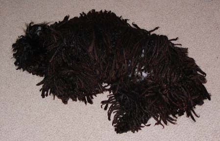 Kasa came to us from Sweden at 3 months of age. She was the first Puli her breeder had ever shipped to the US from Sweden. And what a doll! She was just a little black blob in the back of what seemed a big crate (but was probably one of the smallest shipping crates) when we picked her up at the DFW airport. After a minute's hesitation, out she came and she never looked back.